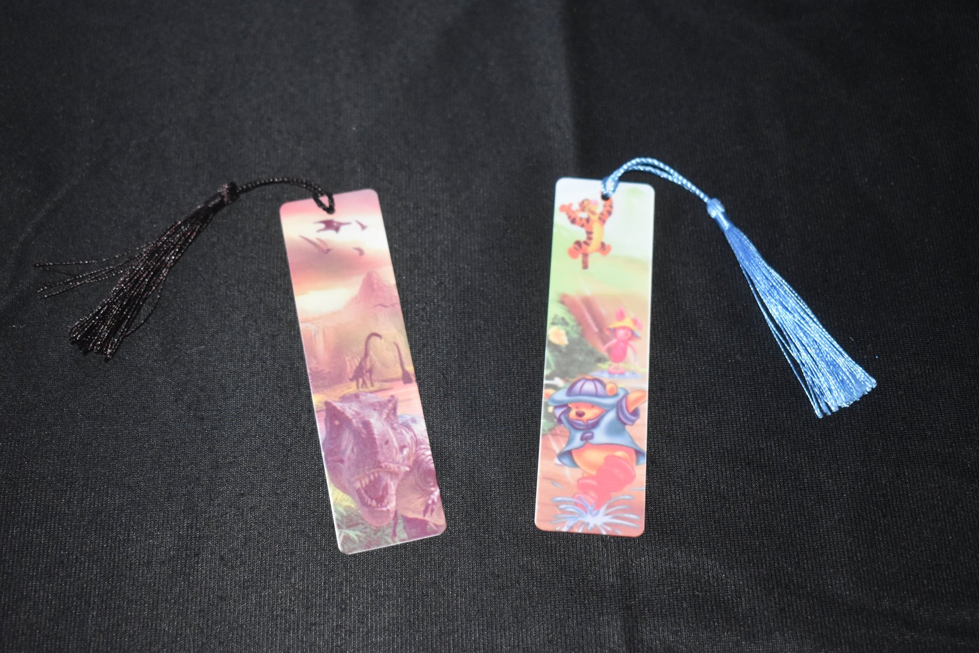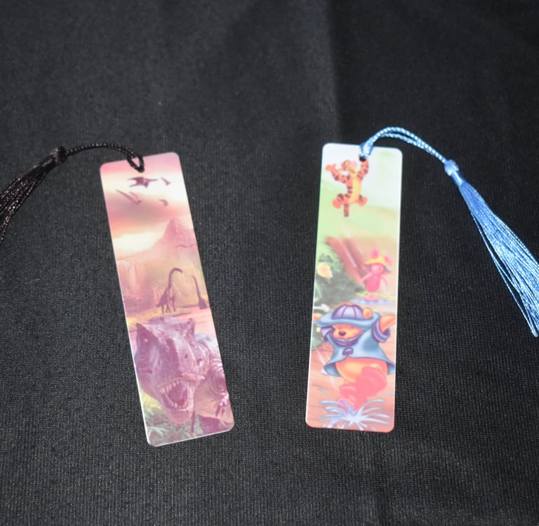 Ici ceux sont des marques pages à l'effigie de dinosaures et de personnages animé.